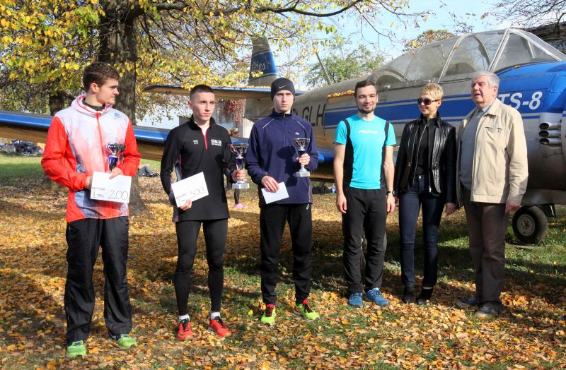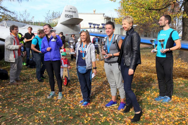 Then came time for the decoration of the winners in each category. Trophies for the best runners were displayed on the wing of the white-blue Bies aircraft, standing next to the starting and finish line. The awards ceremony for the winners of the first, second and third place in the categories: open, airline industry and student was chaired by Witold Wiśniowski – the Director of the Institute of Aviation and Magdalena Nizik – CEO of General Electric Company Polska. The winners, apart from trophies, received also money bills to Decathlon stores.